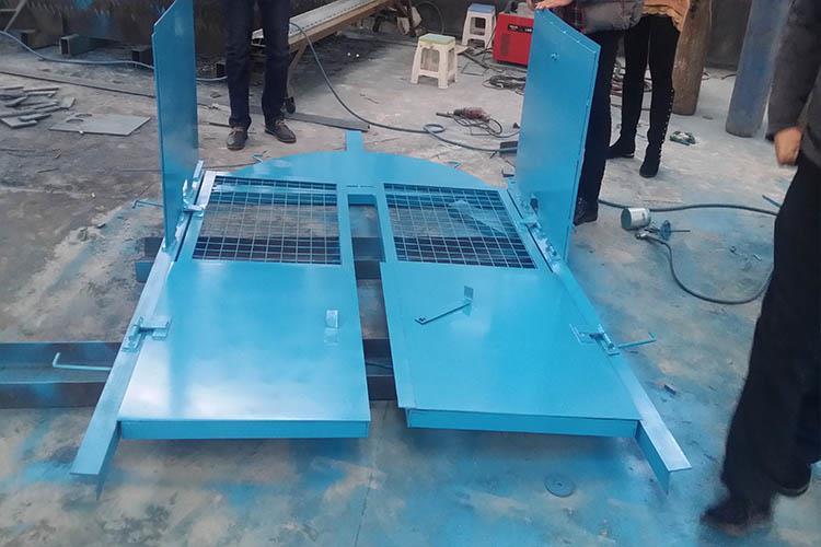 3、將方向調(diào)正,保證防火柵欄兩用門只能向外開,然后將兩扇門同時用力立起在井口。